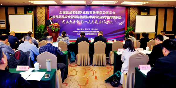 10月13日,由全国食品药品职业教育教学指导委员会主办、我校承办的全国食药行指委食品药品安全管理与检测技术类专委会成立大会暨第一次委员工作会议在宁波隆重召开。国家食品药品监督管理总局高级研修学院教材部主任高博、黑龙江省人民政府参事室正厅级特约研究员、原黑龙江省食药监督管理局常务副局长张守文、中国教育科学研究院职业与继续教育研究所所长孙诚、学校党委书记陈厥祥、校长任文霞以及来自全国各省市的食药监管部门、行业企业专家、食药类院校领导、一线专业骨干教师,共计60余人参加会议。大会由专委会主任委员、我校副校长金辉主持。
