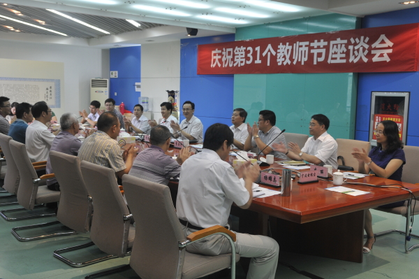 市委宣传部副部长、市文明办主任李正平、市教育局纪工委书记孙剑鸣、市人力社保局副局长王效民、市委宣传部办公室主任郑海江、市委宣传部宣传处处长徐洪国、市委宣传部理论处处长江再国、市教育局人事处处长李丽、市委宣传部办公室陆劲松等陪同看望慰问。校党委书记陈厥祥、校党委副书记杨俊杰、纪委书记王志华、副校长金辉、党委委员、宣传部长周春芬出席座谈会,我校宁波市“五一”劳动奖章获得者、浙江省教学名师、退休教师代表、青年教师代表等三十余名教师代表参加了座谈会。