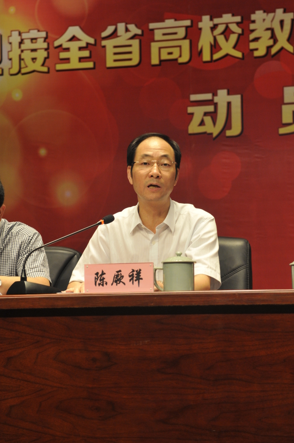 9月9日下午,学校召开迎接全省高校教学巡回诊断检查工作动员大会,校党委书记陈厥祥、校党委副书记、副校长任文霞、校党委副书记杨俊杰、副校长许莉勇、纪委书记王志华、副校长金辉、副校长韩忠培、党委委员、宣传部长周春芬出席会议,全体教职员工参加会议。动员大会由任文霞主持。