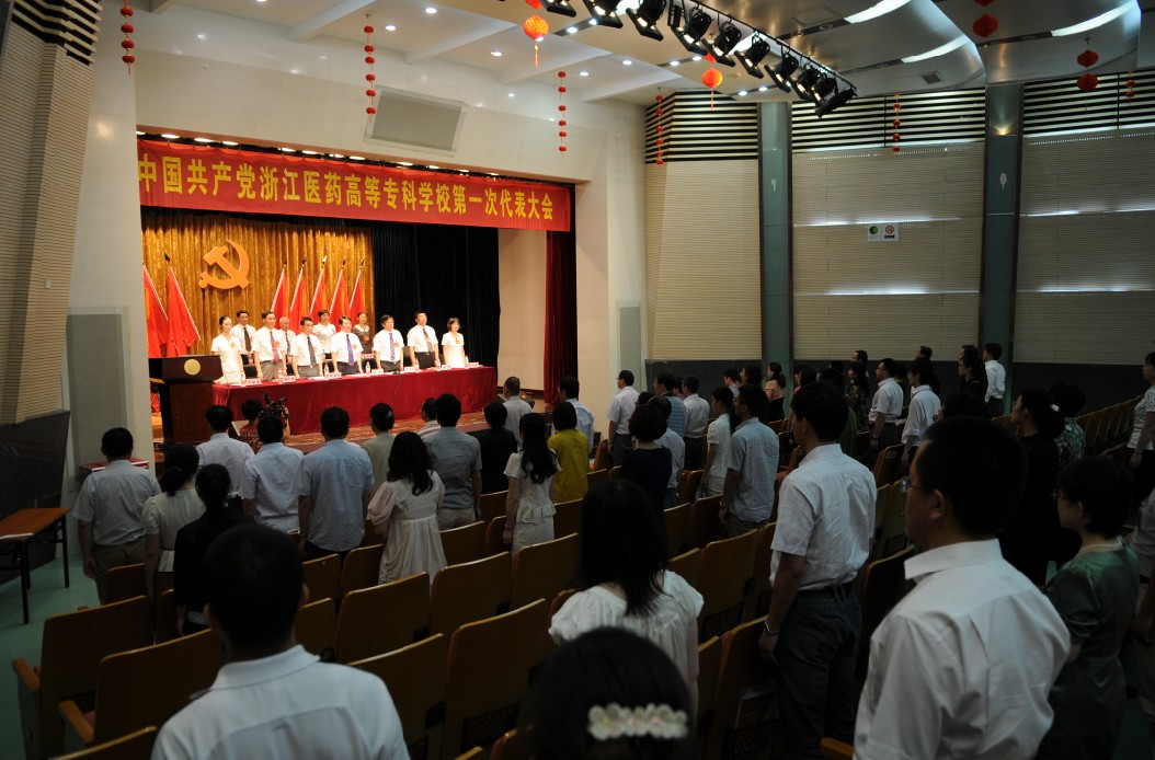 在庄严的《国际歌》声中,中国共产党浙江医药高等专科学校第一次代表大会胜利闭幕!