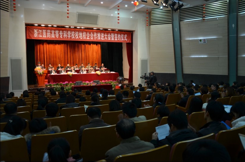 浙江省食品药品监督管理局人事处处长姚军代表省局讲话,他在讲话中充分肯定我校近年来校地校企合作取得的成绩,对我校今后的校地校企合作提出明确要求:首先要提高认识,进一步明确加强校地校企合作的新要求。作为我省唯一一所医药类高等专科学校,学校肩负着为行业发展培养高素质食品药品类技能型人才的重任,要站在推动产业及地方发展,保障人民群众食品药品安全的高度,切实增强责任感和使命感,积极探索食品药品类高职教育与行业地方发展的结合点。其次是不断探索创新,大力拓宽校地校企合作的广度和深度。要拓宽校企沟通渠道,实现学校与企业的零距离接触。学校要定期举办合作恳谈会、校企高层论坛等活动,加强与企业的接触和互动。要通过互换、互聘、兼职等多种形式,不断完善兼职教师和专任教师到生产第一线见习和挂职锻炼制度。三是要加强协作,形成推进校地校企合作的工作合力。要把各方面力量凝聚成强大工作合力,全面深入地推进校地校企合作。