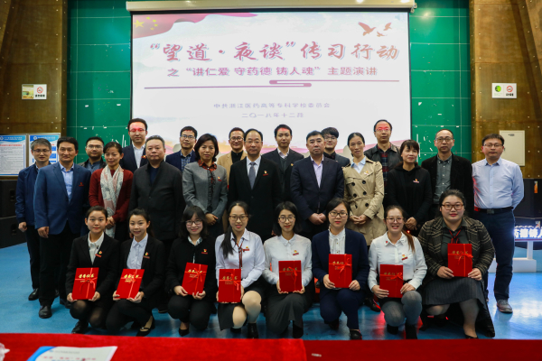 为深入学习宣传党的十九大精神,贯彻落实全国教育大会精神和高校思想政治工作会议精神,全面推进习近平新时代中国特色社会主义思想在浙药校园落地生根,推动“两学一做”学习教育常态化制度化。按照《中共浙江医药高等专科学校委员会“望道•夜谈”传习行动方案》的安排,12月4日下午,学校在学生活动中心影视厅举行“望道·夜谈”传习行动之“讲仁爱、守药德、铸人魂”主题演讲比赛。校党委书记陈厥祥、副校长许莉勇、副校长韩忠培、纪委书记方子祥出席活动并为获奖者颁奖。党委工作部门负责人、各党总支负责人、教工党员代表参加了活动。