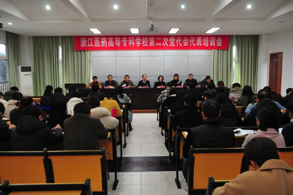 1月10日上午,浙江医药高等专科学校第二次党代会代表培训会在图书馆报告厅举行。校党委书记陈厥祥、校长任文霞、副校长杨俊杰、校党委副书记许莉勇、副校长韩忠培、纪委书记方子祥、副校长罗文华、党委委员、宣传部长万松钱以及全体党代表出席大会,培训会由杨俊杰主持。