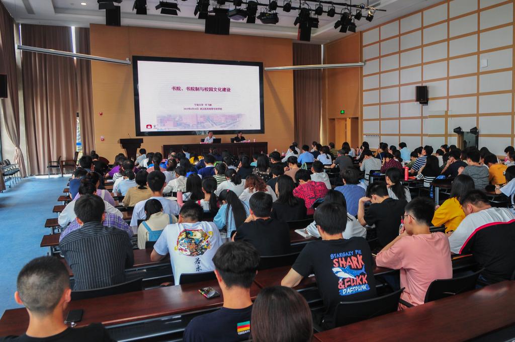 6月18日下午,绍兴文理学院原校长、宁波大学教授叶飞帆应邀来我校做了题为《书院、书院制与校园文化建设》的专题报告,副校长杨俊杰、校党委副书记许莉勇、副校长韩忠培、纪委书记方子祥、副校长罗文华、党委委员陆晓莉出席报告会。中层干部、党总支委员、党支部书记,全体辅导员、班主任代表和学生干部代表近200人参加报告会。会议由许莉勇主持。