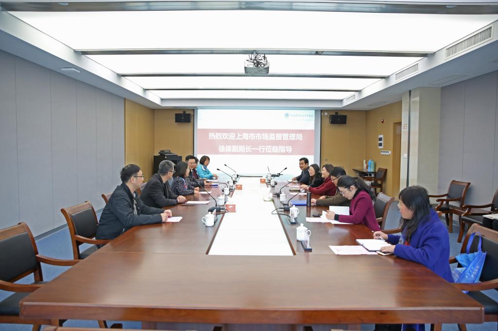 12月18日,上海市市场监督管理局副局长徐徕、计量处处长王虎和主任科员裘诗杰以及上海市浦东新区市场监督管理局副局长孙文、金山区市场监督管理局副局长陆永妹、上海市医疗器械检测所质控办主任王崴等一行6人来访我校奉化校区。校长任文霞、副校长罗文华、相关部门及学院负责人接待了徐徕一行,并在行政楼213会议室开展交流座谈。