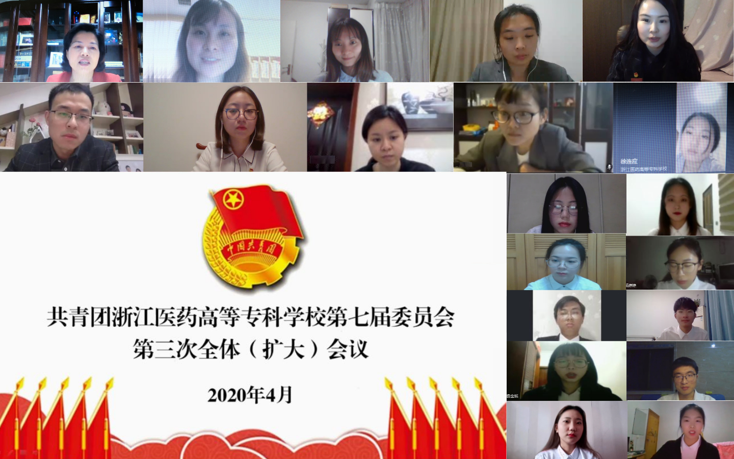 4月14日晚,我校召开共青团浙江医药高等专科学校第七届委员会第三次全体(扩大)会议,增补、选举第七届委员会委员。因受新冠肺炎疫情影响,本次会议采取钉钉线上会议形式举行,第七届委员会委员、各学院团委书记、增补委员候选人及部分团员代表等50人参加会议。校党委副书记许莉勇出席会议并发表讲话。