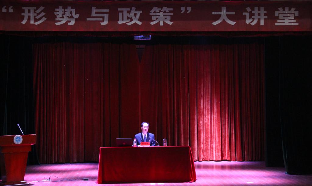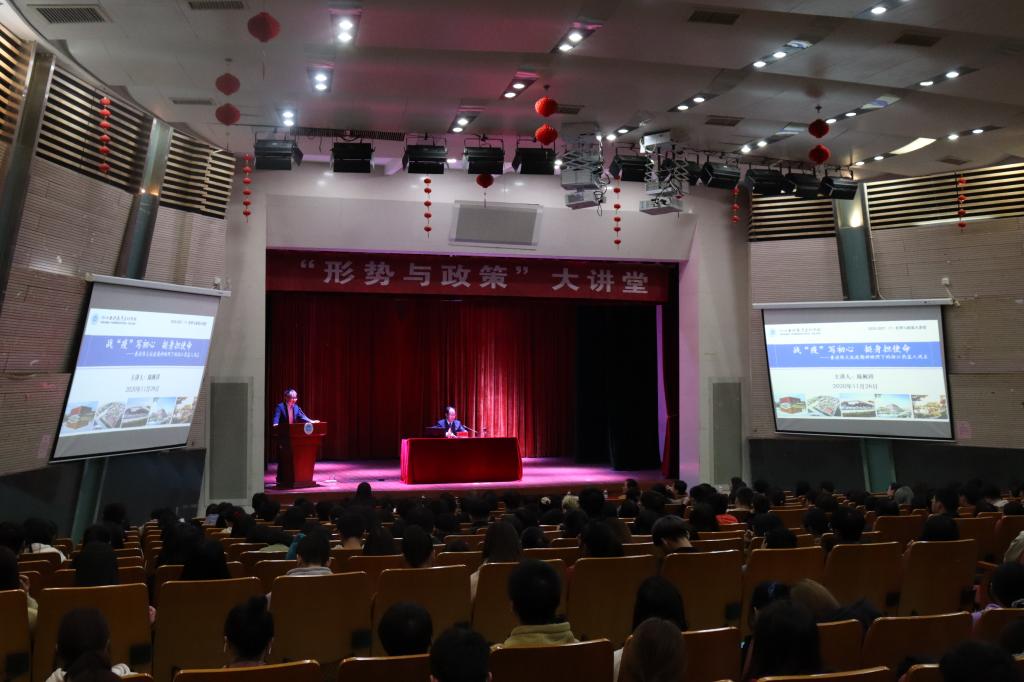 为贯彻落实习近平总书记在学校思想政治理论课教师座谈会上的重要讲话精神和“中共中央国务院关于加强和改进新形势下高校思想政治工作的意见”精神,积极落实好“学校领导干部带头走进课堂、带头推动思政课建设、带头联系思政教师”的工作要求。帮助广大学生认清国内外形势、教育和引导广大学生全面准确地理解党的路线、方针和政策,增强“四个意识”,坚定“四个自信”,坚决做到“两个维护”。11月26日晚,校党委书记陈厥祥、校长任文霞分别在鄞州校区学生活动中心报告厅、奉化校区行政楼111报告厅为我校师生讲授形势与政策课。