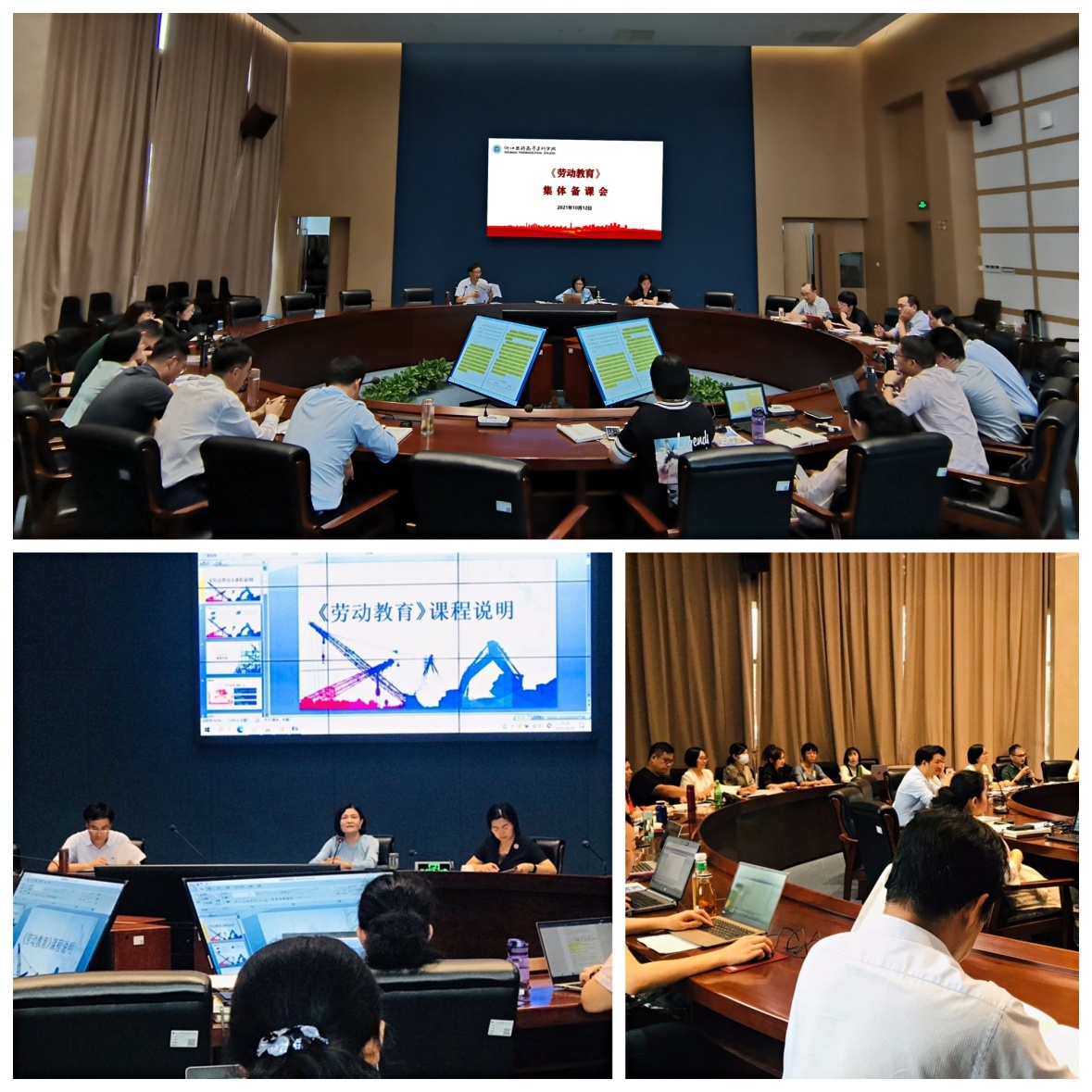 为深入贯彻落实中共中央、国务院印发的《关于全面加强新时代大中小学劳动教育的意见》,中共浙江省委、浙江省人民政府印发的《关于全面加强新时代大中小学劳动教育的实施意见》等相关文件精神,全面落实大学生劳动素养教育,10月12日下午,学校在奉化校区113会议室召开了《劳动教育》集体备课会,校长任文霞、校党委副书记许莉勇、副校长韩忠培,学生处、教务处、教学质量管理中心等相关职能部门负责人,各学院院长、总支书记(主持工作副书记)以及《劳动教育》全体任课教师参加会议。