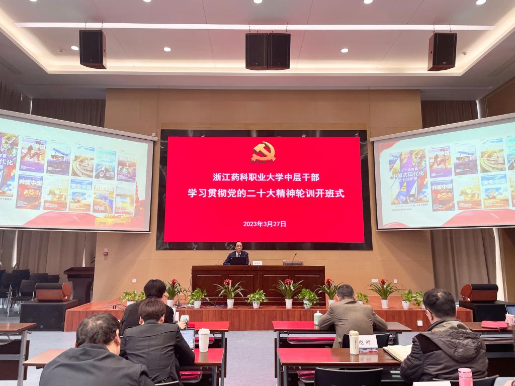 为全面学习贯彻党的二十大精神,更好地推动学校职业本科建设高质量发展,3月27日下午,学校中层干部学习贯彻党的二十大精神轮训开班式在奉化校区举行,校党委书记陈厥祥、党委副书记杨俊杰,党委委员韩忠培、张佳佳、戴桂平等领导,以及全体中层干部参加了开班式,会议由杨俊杰主持。