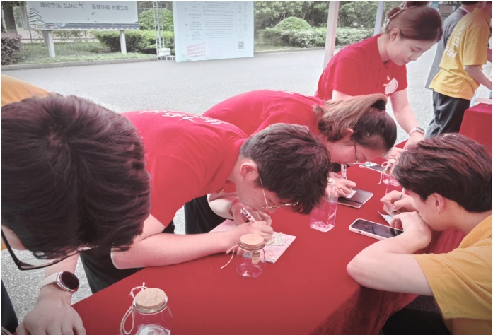 写故事,笔尖翻飞,许美好愿景。认真聆听完陈书记的报告后,青年学子们心潮澎湃,情绪激昂,纷纷提笔书写,写下至本世纪中叶建设成为富强民主文明和谐美丽的社会主义现代化强国时的美好愿景,并投入到“时光胶囊”中。药在时间里,时间在药里,展望二十五年后,如今的青年学子已成为医药行业的中流砥柱,那时请他们回到母校共同打开“时光胶囊”,共同见证伟大中国梦的实现。