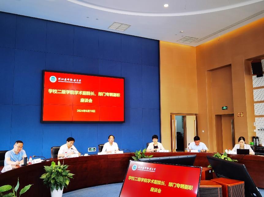 为深入贯彻落实省委关于全面加强“三支队伍”建设工作部署,进一步加强学校年轻干部队伍建设,扎实推进学校年度工作任务落实,6月18日上午,学校二级学院学术副院长、部门专聘副职聘座谈会在奉化校区行政楼召开,校党委书记陈厥祥,校长娄小娥,党委副书记韩忠培,党委委员、组织部(人才办)部长(主任)、机关党委书记楼剑锋,党委委员、人事处(教师工作部)处长(部长)戴桂平等领导出席会议,组织部、人事处等部门相关负责人,二级学院学术副院长、部门专聘副职等参加会议,会议由韩忠培主持。