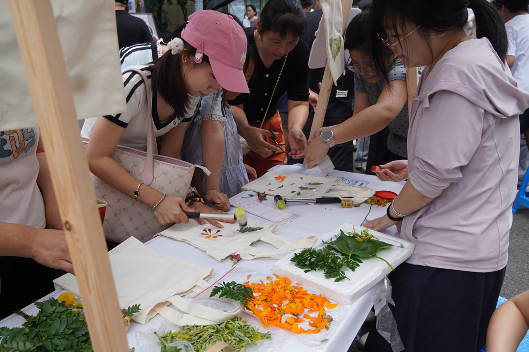 在“浙药植韵•本草伴生实践区”,新生们巧手翻飞:桑皮纸裹住艾绒,卷制出温经散寒的传统艾条;山楂片、莲子、薏苡仁在彩绳穿梭间,变身寓意“好运连连”“连中三元”“仁心仁术”的祈福手串;艾叶、藿香等药材在巧思调配下,化作一枚枚驱蚊安神的专属香囊。“浙药工坊•匠艺传习体验区”则弥漫着匠艺的芬芳:UV胶将杭白菊、薄荷定格成晶莹剔透的草药书签,拓印锤敲击下,紫苏叶、薄荷芽在帆布包上绽放出自然的永恒纹样,引得新生纷纷举起“把健康背在身上”的创意作品合影留念。