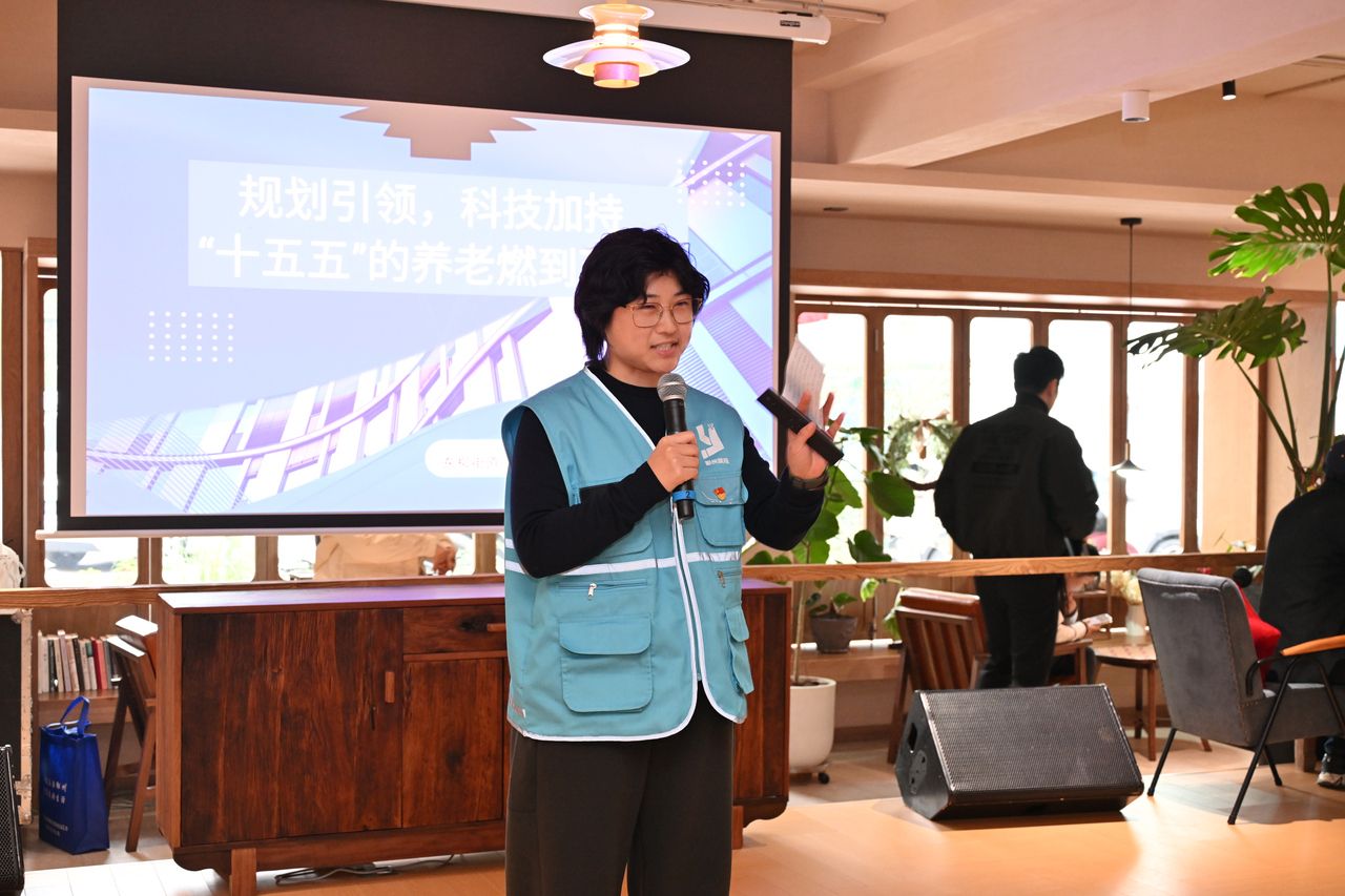 活动在《暖街新韵时代和声》主题朗诵中拉开序幕,铿锵有力的词句,传递出学习贯彻全会精神的坚定决心,迅速凝聚了现场人心。随后,青年社工马泽幸带来《政策黑科技双BUFF:锦苑养老燃到起飞》主题宣讲。她以“养老焦虑”网络热词切入,用风趣的种草式语言,生动解读“十五五”规划中养老服务的品质发展方向,并分享了锦苑社区智慧食堂、共富工坊、AI守护系统等鲜活案例,描绘出一幅政策与科技赋能下的幸福养老新图景,引发了在场居民,特别是老年朋友的强烈兴趣与共鸣。