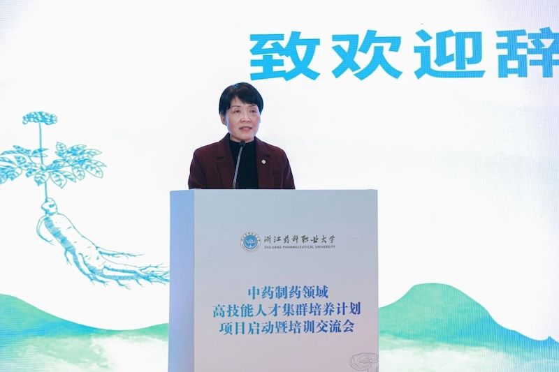 为深入贯彻习近平总书记关于健康中国建设和中医药工作的重要论述精神,深入贯彻《教育强国建设规划纲要(2024-2035 年)》精神,落实教育强国建设三年行动计划,破解行业高技能人才供给与产业发展需求结构性矛盾,聚焦中药制药领域高技能人才集群培养试点工作,凝聚院校、企业、行业专家共识,共商人才培育创新路径,2026年1月30日,由浙江药科职业大学牵头主办的中药制药领域高技能人才集群培养计划项目启动暨培训交流会在宁波顺利召开。校长娄小娥主持大会并致欢迎辞。副校长沈忠华、党委副书记韩忠培、副校长姜宇国、党委委员张佳佳参加会议和有关活动。